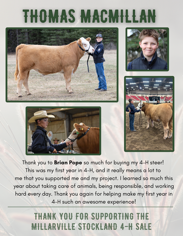 We would like to extend a thank you to our past sponsors and buyers. Your support has strengthened our club and encouraged youth in agriculture.